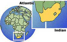 South Africa is surrounded to the west, south and east by the ocean and has a 3 000 km coastline which is swept by two major ocean currents - the warm south-flowing Mozambique-Agulhas Current and the cold Benguela. The former skirts the east and south coasts as far as Cape Agulhas, while the Benguela